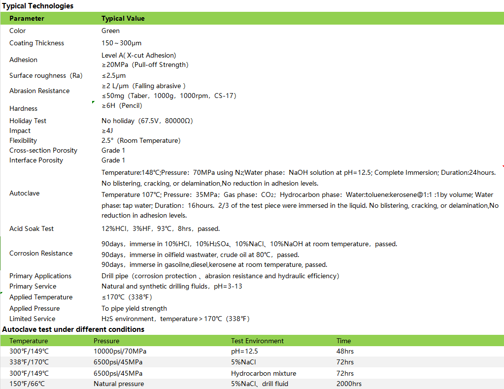 It is a multi-purpose drill pipe internal coating that can be used over a wide temperature and pH range..