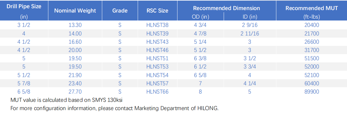 Common HLNST Drill Pipe Configurations