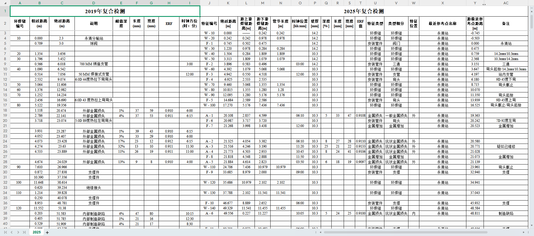 通過對比管道內檢測數據與電子化竣工資料進行數據對齊,可系統識別在役管道中存在的異常情況。針對所有識別出的異常焊口,復核原始射線底片,依據標準進行缺陷定性、定量與嚴重等級判定。